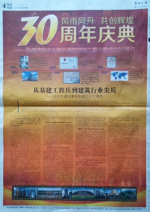 “三十年的積累與實踐,三十年的改革與創(chuàng)新,為中太建設(shè)集團打造了一張中國建筑業(yè)名片。”