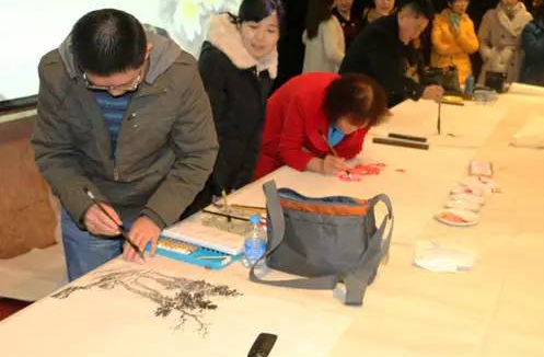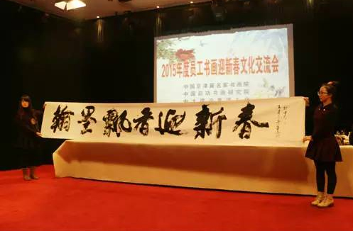 “翰墨飄香迎新春”!12月25日上午,由中國京津冀名家書畫院、中國啟功書畫研究院和中太建設(shè)集團(tuán)工會聯(lián)合舉辦的“2015年度員工書畫迎新春文化交流會”活動在中太大廈二樓報告廳圓滿落幕。來自京津冀地區(qū)的十余名書畫名家與企業(yè)員工歡聚一堂,以中國傳統(tǒng)書畫藝術(shù)的形式共迎新年的來臨。書畫藝術(shù)家現(xiàn)場揮墨創(chuàng)作,并將作品贈與中太員工,場面和諧歡暢。