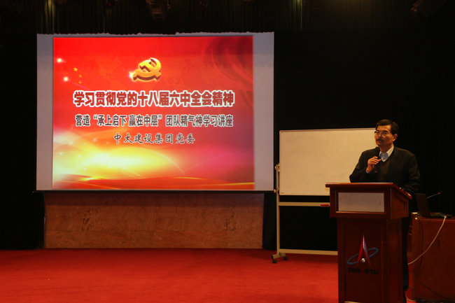 為學(xué)習(xí)宣傳貫徹黨的十八屆六中全會(huì)精神,結(jié)合集團(tuán)公司當(dāng)前的實(shí)際情況,營造團(tuán)結(jié)向上、執(zhí)行有力、務(wù)實(shí)高效的思想工作氛圍,集團(tuán)公司黨委于2016年11月10日下午在中太大廈二樓報(bào)告廳舉辦了“學(xué)習(xí)貫徹黨的十八屆六中全會(huì)精神,營造承上啟下贏在中層團(tuán)隊(duì)精氣神”的學(xué)習(xí)講座。