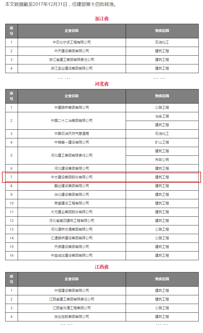 近日,由國(guó)家住房和城鄉(xiāng)建設(shè)部核準(zhǔn)的2018年全國(guó)總承包特級(jí)企業(yè)名單公布,中太建設(shè)集團(tuán)名列其中。