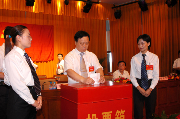 代表大會在完成各項議程后,在雄壯的《國歌》聲中勝利閉幕。  黨委書記李文健同志在黨代會上投票