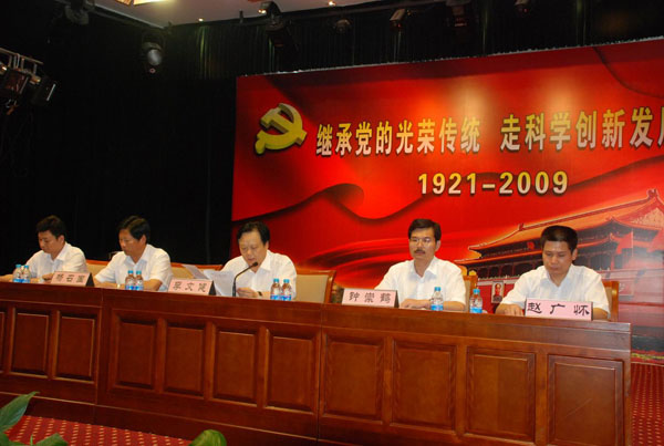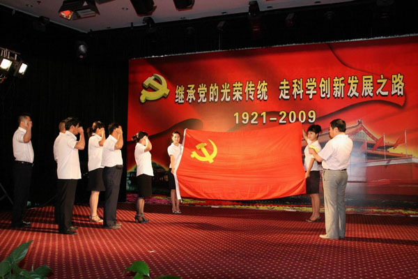 黨委副書記鐘崇鶴宣讀了2008年度“一先三優(yōu)”表彰決定。然后,李文健、鐘崇鶴、楊召國、趙廣懷、梅興元分別為受表彰單位和個人頒獎。李春陽等6名新黨員面對黨旗,舉行了新黨員入黨宣誓?偛俊⒏骷瘓F(板塊)機關(guān)全體黨員及所屬各黨支部班子成員、部分黨員、管理人員200多人參加了表彰大會。會議采取以演唱歌頌黨的革命歌曲為主要內(nèi)容、邊頒獎邊演出文藝節(jié)目的形式,將大會推向了一個高潮,受到了大家的歡迎和贊揚。