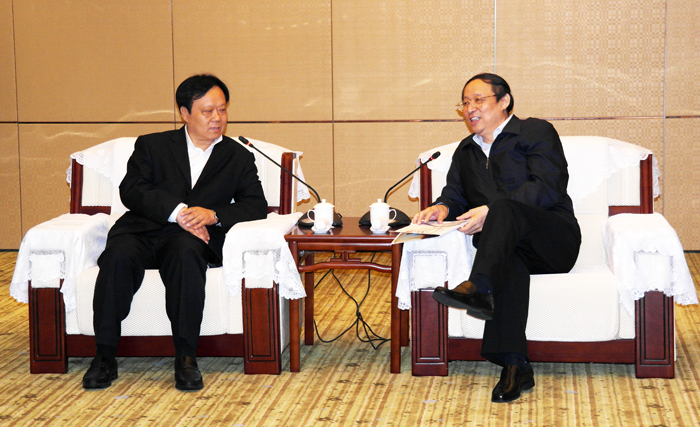 安徽省省長王學(xué)軍(右)親切接見中太建設(shè)集團(tuán)董事局主席李文健