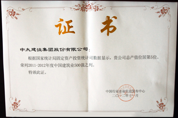發(fā)布時間:2013/2/1 瀏覽次數(shù):3778 次 來源:中太建設集團股份有限公司