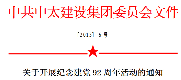 為慶祝中國(guó)共產(chǎn)黨建黨92周年,弘揚(yáng)黨的光榮傳統(tǒng)和優(yōu)良作風(fēng),進(jìn)一步調(diào)動(dòng)和激勵(lì)廣大黨員“關(guān)心中太、維護(hù)中太、效力中太”工作的熱情,開(kāi)創(chuàng)各項(xiàng)工作創(chuàng)新驅(qū)動(dòng)和科學(xué)發(fā)展的新局面,為完成2013年各項(xiàng)工作任務(wù)和經(jīng)濟(jì)技術(shù)指標(biāo)鼓勁加油,推動(dòng)集團(tuán)公司又好又快發(fā)展,深入貫徹黨的“十八大”精神和習(xí)近平同志關(guān)于在全黨進(jìn)一步“轉(zhuǎn)變作風(fēng)、端正學(xué)風(fēng)、改進(jìn)文風(fēng)”的要求,結(jié)合集團(tuán)公司實(shí)際,集團(tuán)黨委決定,在“七·一”前后,開(kāi)展以下系列活動(dòng):