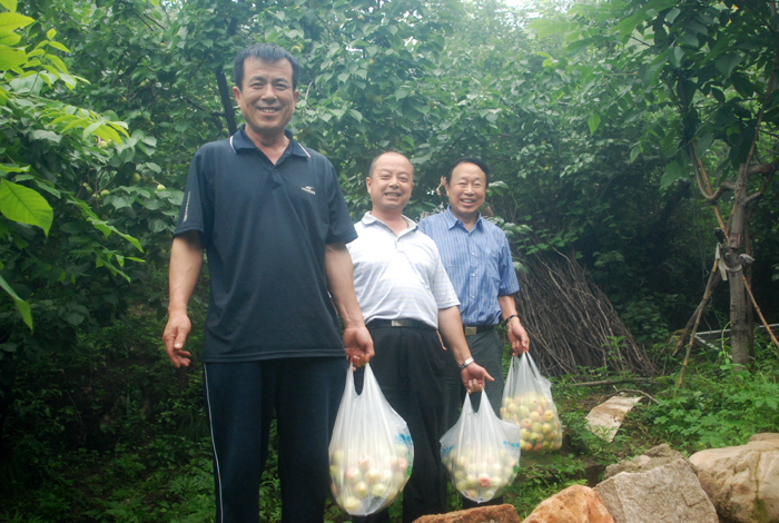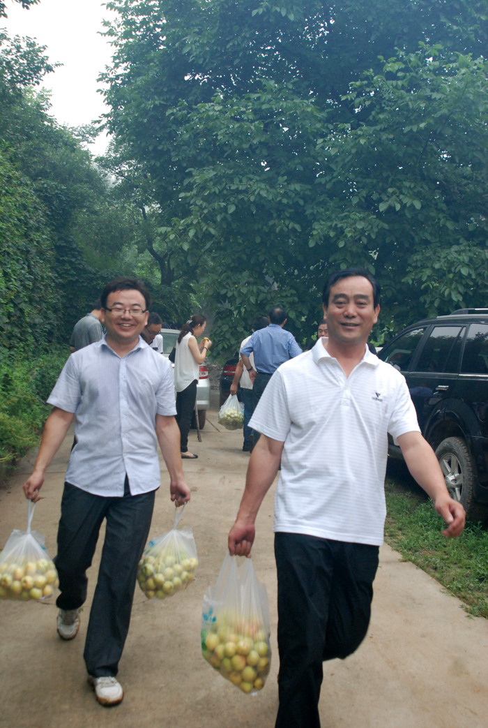 從京承高速公路下道,兩輛大巴車(chē)沿著崎嶇山路緩慢行駛。山道兩側(cè)灌木郁郁蔥蔥,置身于這天然氧吧,清新的空氣順暢地能讓人一下子呼吸到了丹田而心神氣爽。一路上,路邊采摘的果園比比皆是?諝庵心枪麑(shí)散發(fā)出的清香,直入心脾,令人口舌生津。
