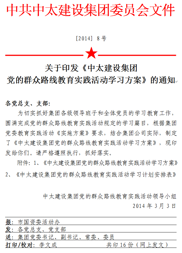 深入開展黨的群眾路線教育實踐活動,是保持黨的先進性和純潔性、鞏固黨的執(zhí)政基礎(chǔ)和執(zhí)政地位必然要求,是新形勢下堅持黨要管黨、從嚴治黨的重大決策,是解決群眾反映強烈的突出問題的重大舉措。同時也是集團公司“打造鐵軍、重塑軍魂,集聚正能量、共圓中太夢”、推動經(jīng)濟發(fā)展提質(zhì)增效、上檔升級的強大動力。根據(jù)市國資委黨委的統(tǒng)一部署和集團黨委《活動實施方案》要求,結(jié)合集團實際情況,為全面落實本次活動規(guī)定動作的學(xué)習(xí)內(nèi)容,圓滿完成好學(xué)習(xí)教育任務(wù),特制定學(xué)習(xí)方案如下: