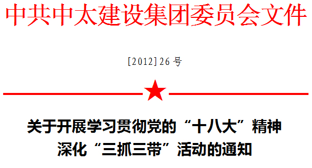 為深入學(xué)習(xí)貫徹落實(shí)黨的“十八大”會(huì)議精神,樹立“嚴(yán)、細(xì)、精、實(shí)”的工作作風(fēng),努力打造政治堅(jiān)定、業(yè)務(wù)精良、求真務(wù)實(shí)、作風(fēng)過硬的領(lǐng)導(dǎo)班子和黨員隊(duì)伍,打造中太黨組織品牌,根據(jù)集團(tuán)二次黨代會(huì)目標(biāo)要求,集團(tuán)黨委決定在全集團(tuán)開展以“抓好班子、帶好隊(duì)伍,抓好支部、帶好黨員,抓好黨員、帶好群眾”為主要內(nèi)容的“三抓三帶”活動(dòng),F(xiàn)將活動(dòng)實(shí)施有關(guān)事宜通知如下: